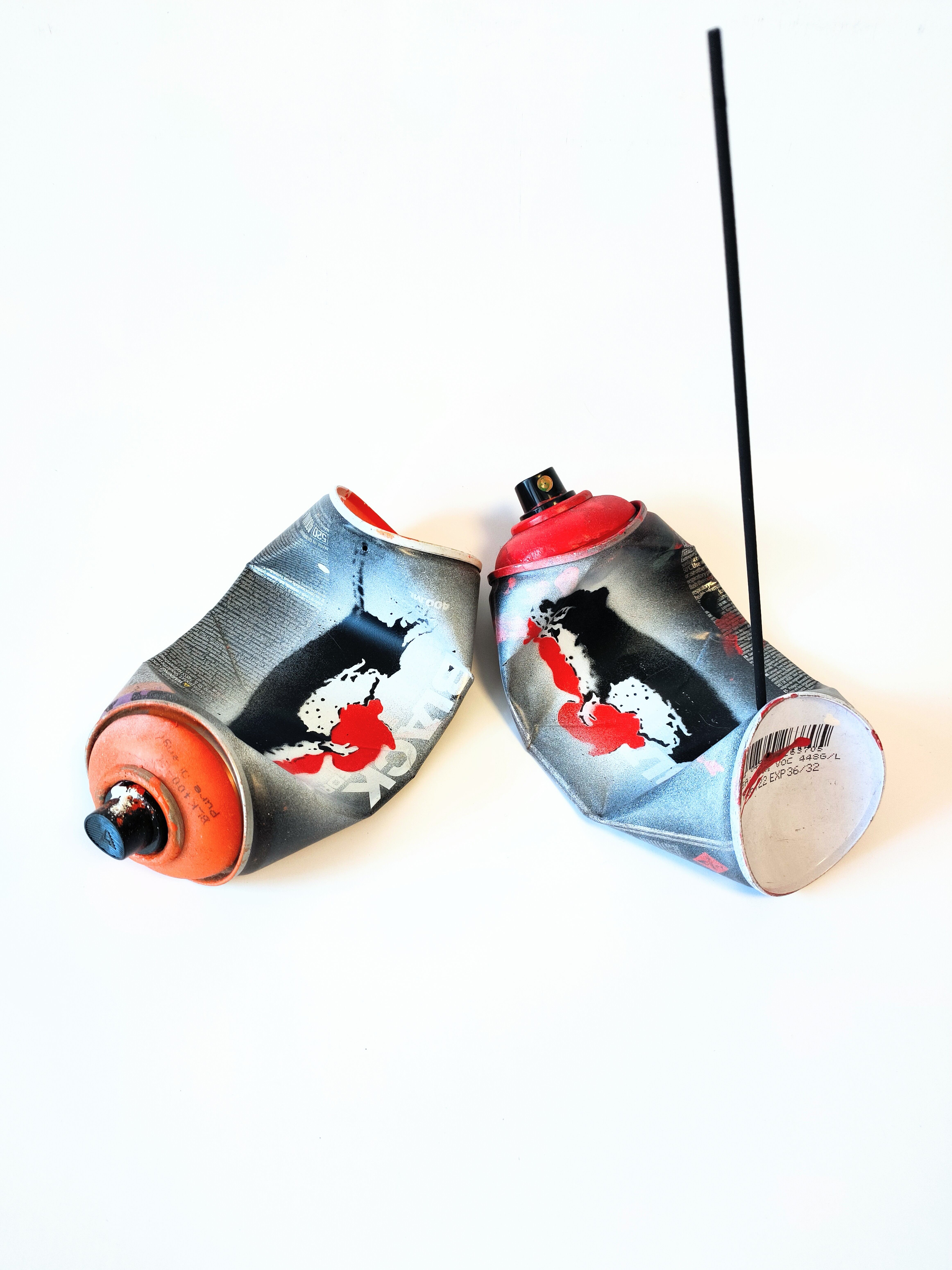 スプレーの空き缶をアッシュトレイにした作品です